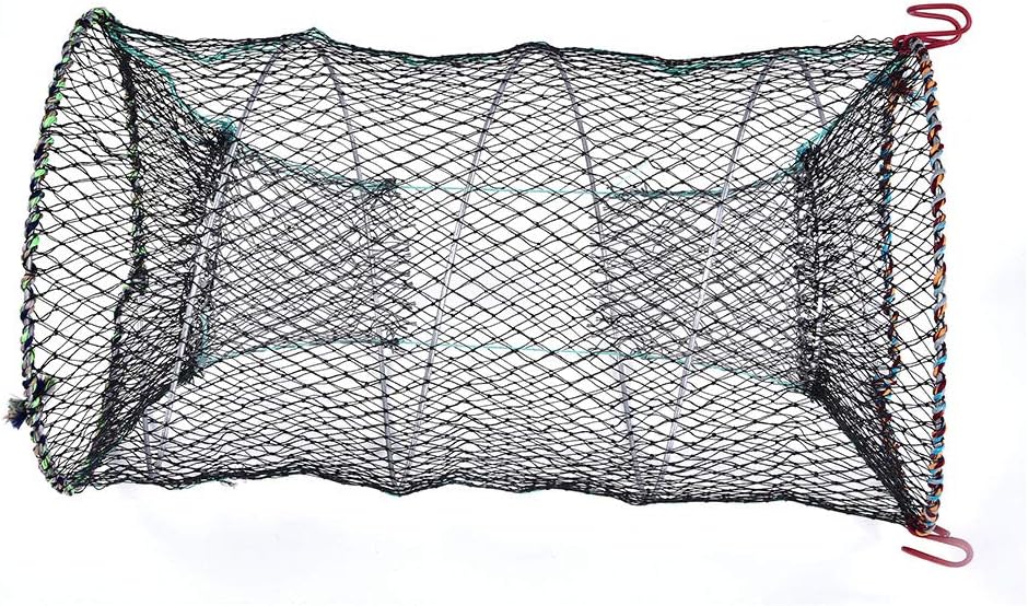 - SUPERIOR MATERIAL: Fishing net made of nylon mesh and steel wire support,make the crab net durable and lightweight. Quality collapsible cylindrical trap for catching all kinds of fishes, including lobster, crayfish, crab and shrimp