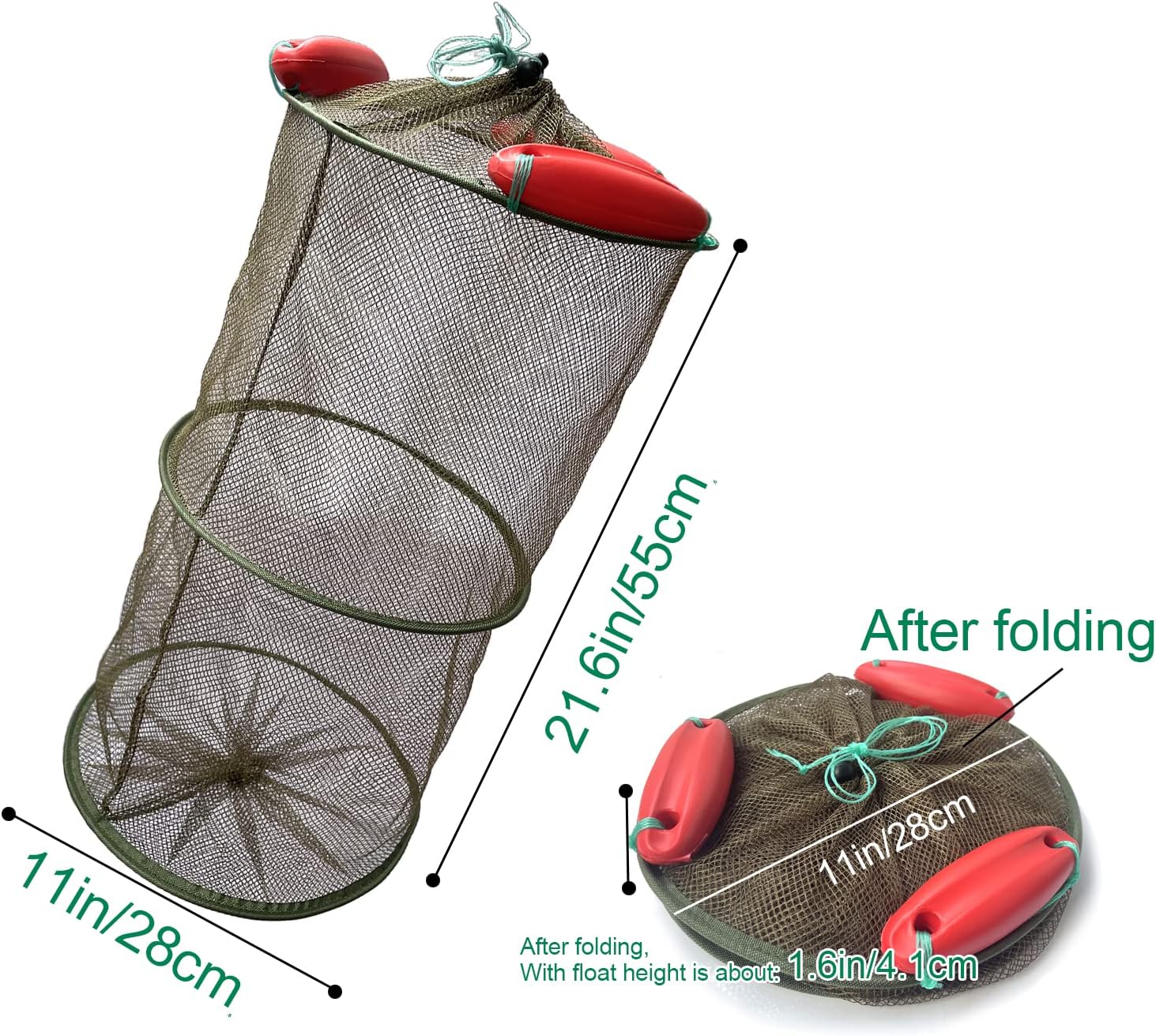Floatable Fishing Net Fish Basket Collapsible Portable Fish Cage Fishing Keep Net for Crayfish, Crab, Fishes, Fishing Accessories Tool