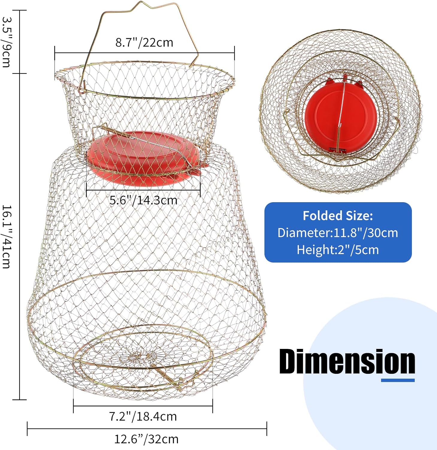 - Premium Material: Our fish baskets are made of premium galvanized steel wire, really sturdy, durable and wear-resistant that won’t be easily deformed or damaged after extrusion and collision. All hinges are reinforced to stand up to the repeated use.
